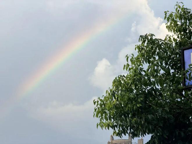 下午的暴雨过去后,气温没有下降太多,还是有些闷热。下班赶去球场的路上看到了彩虹,群里的球迷们在去八万人的路上也纷纷打卡了彩虹。朋友给我带了一个赛百味儿,这又是晚饭在球场里讲究着解决的一天。