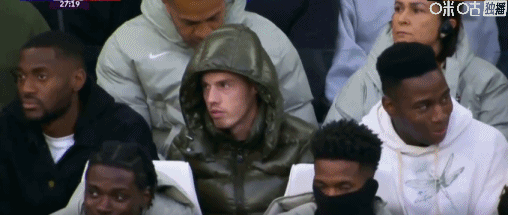 第28分钟,镜头给到看台,正在养伤的帕尔默现场观战