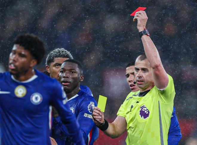 自2022/23赛季以来,切尔西是英超红黄牌最多的球队